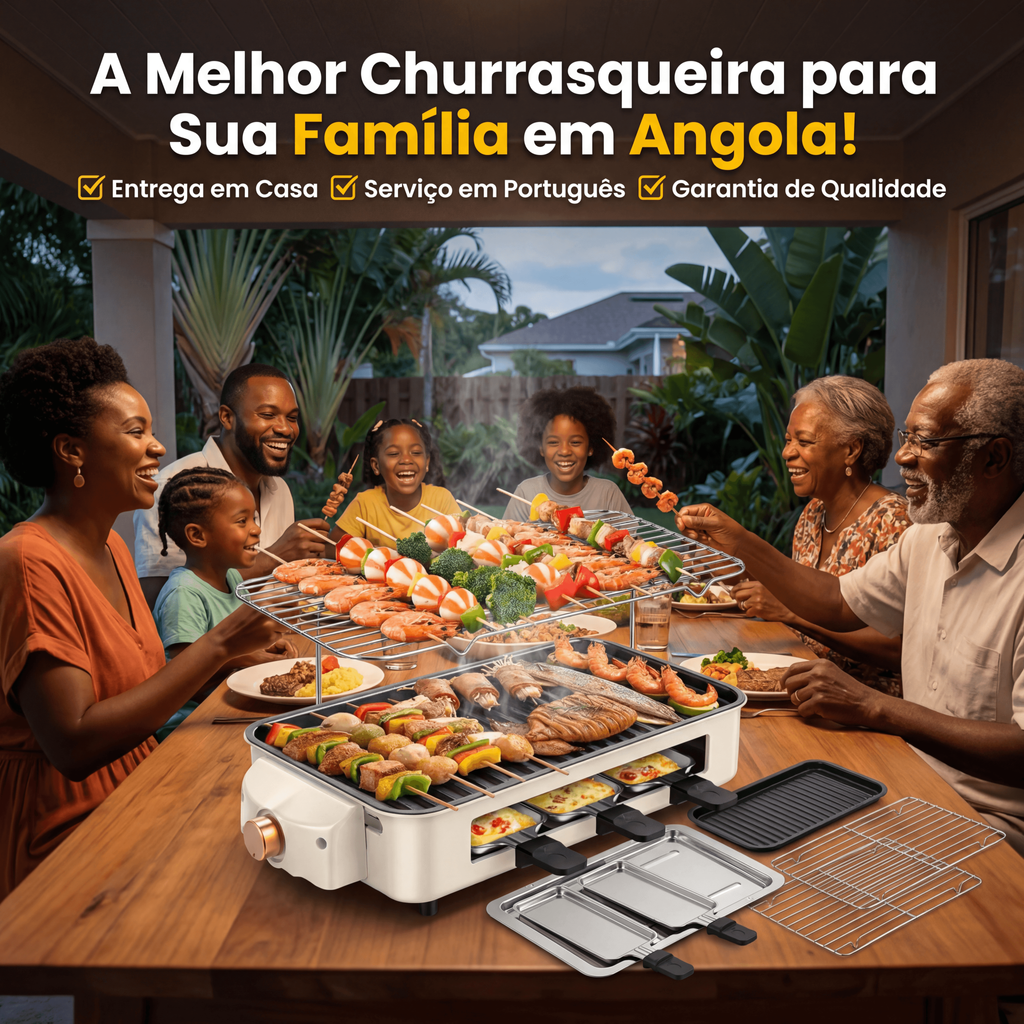 • 🔥 Churrasqueira 1500W: Potência forte com aquecimento duplo de tubos, 3 minutos para aquecer rapidamente, churrasco uniforme e sem cru, reproduzindo o sabor do carvão perfeitamente para reuniões familiares e amigos em Angola! 🥳