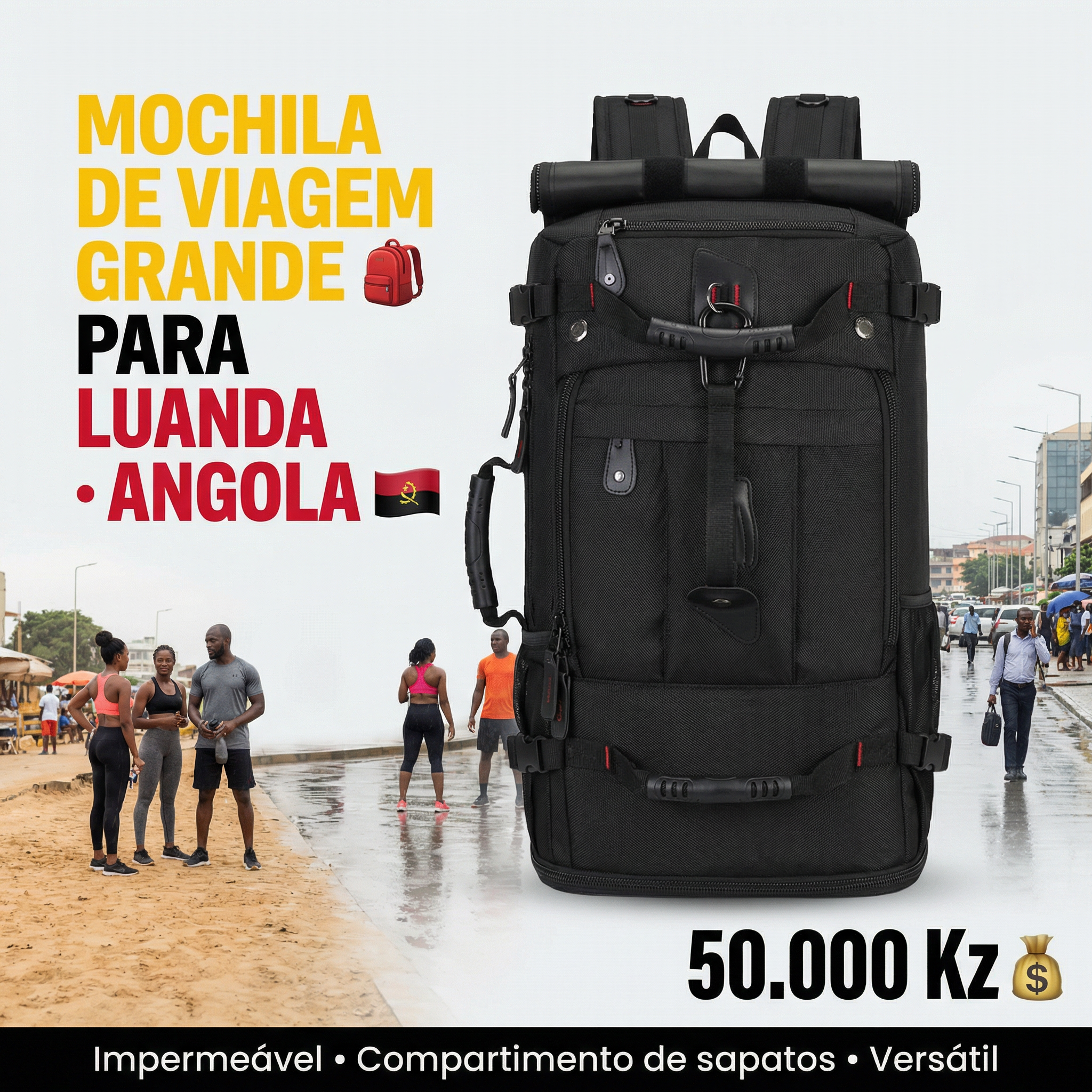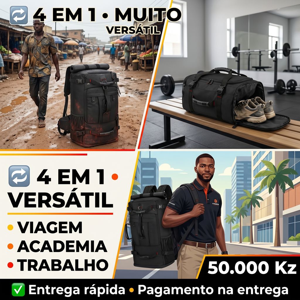 Seja para uma viagem de negócios ✈️, uma ida à academia 🏋️‍♂️, suas compras 🛍️ ou atividades diárias em Luanda 🇦🇴, esta Mochila Resistente e Prática é a sua parceira confiável para todos os momentos!