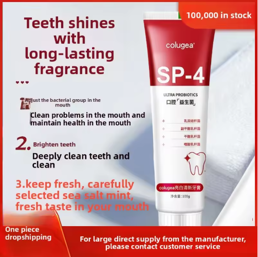 A pasta dental Colugea SP-4 é um produto de cuidados bucais profissional que combina branqueamento dental, remoção de manchas, frescor bucal e proteção gengival. Com fórmula probiótica de alta atividade e tecnologia de limpeza suave, ela realiza a limpeza e cuidados integrados, adequada para as necessidades de cuidados bucais diários de adultos.