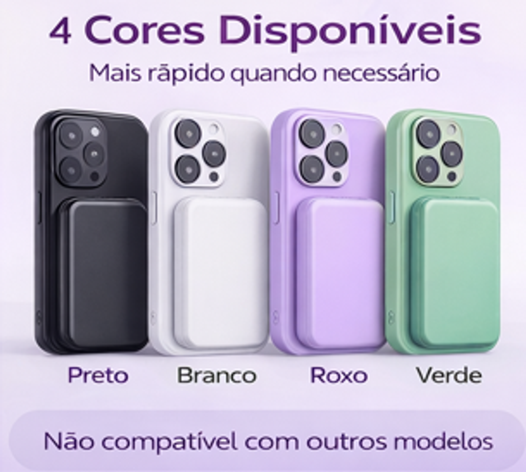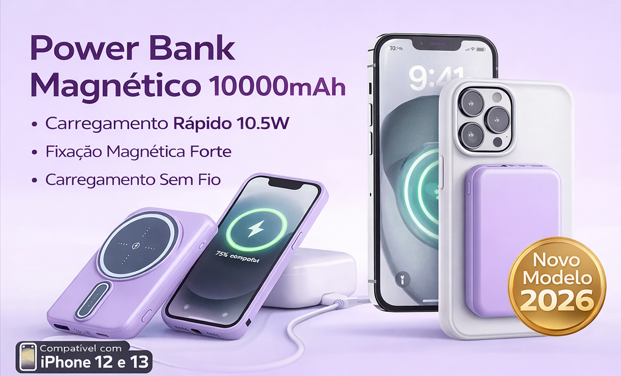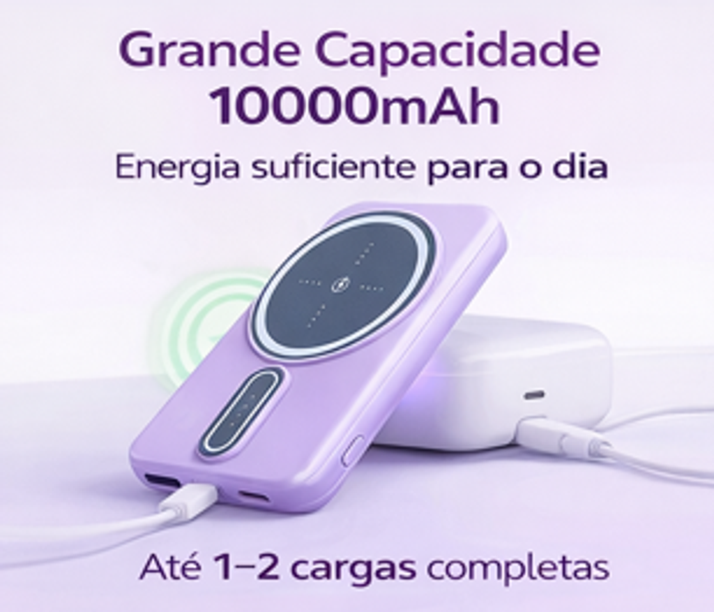 Este power bank magnético de 10000mAh é perfeito para quem precisa manter o telemóvel sempre carregado durante o dia.